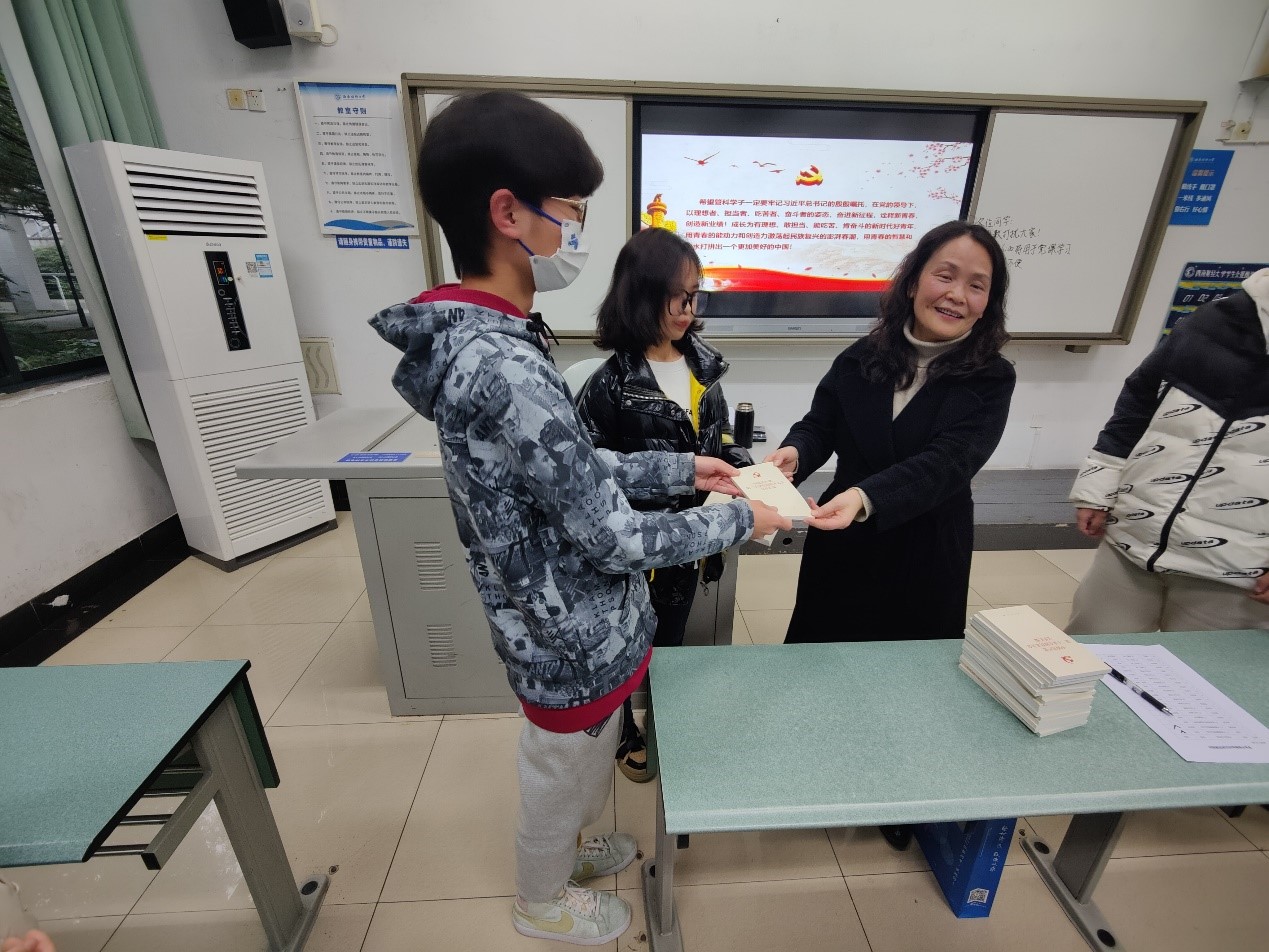 课后,书记、院长向同学们赠送《二十大文件汇编》读本,勉励大家认真学习贯彻二十大精神。