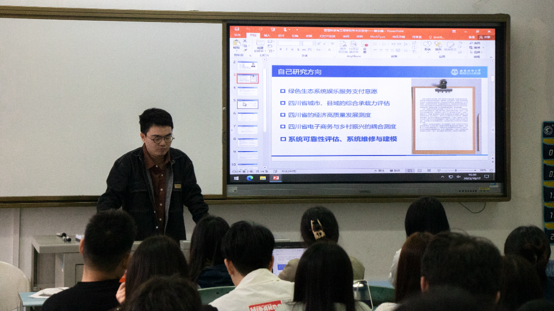 2022级博士鲜宇鑫通过案例分享的方式,生动地向同学们讲述了学术基础和数学能力的重要性,并给出了一些英文文献的阅读建议。