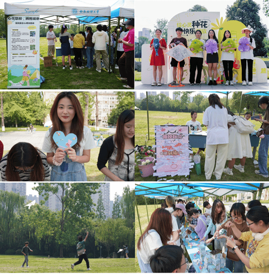 携手计算机与人工智能学院、经济学院、法学院和财税学院在柳林校区光华门草坪举办了“拥抱健康、心花怒放”趣味心理主题游园会。