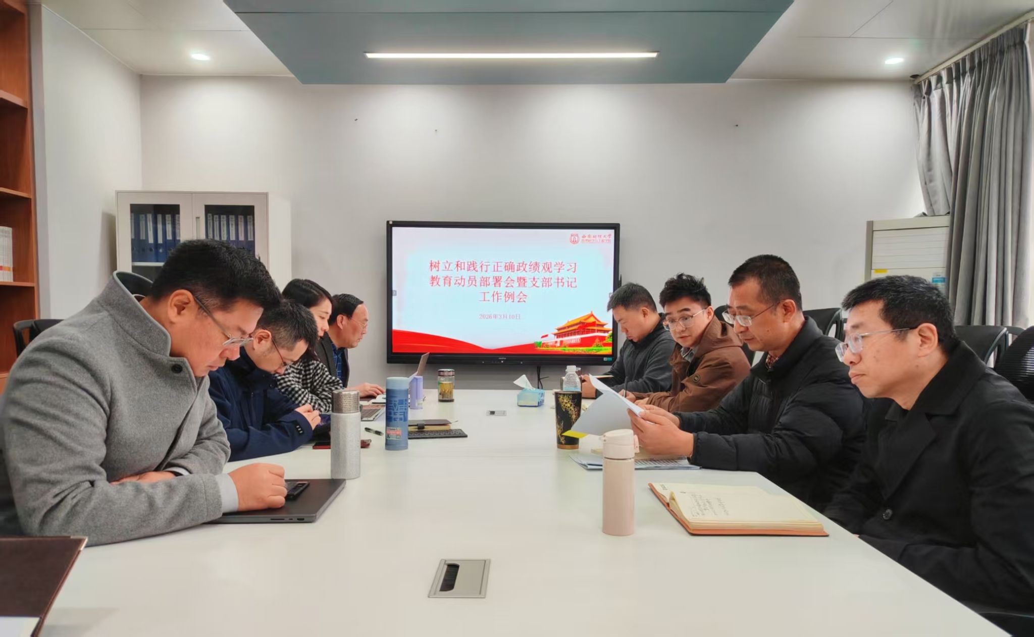 会上,曹旭斌领学习近平总书记关于树立和践行正确政绩观的重要讲话和重要指示精神以及《习近平关于树立和践行正确政绩观论述摘编》《习近平总书记地方工作期间坚持正确政绩观生动实践》等相关内容,学习传达中央、教育部党组和学校党委关于开展学习教育的有关部署要求,并作学院学习教育工作动员讲话,对全院开展学习教育提出明确要求。