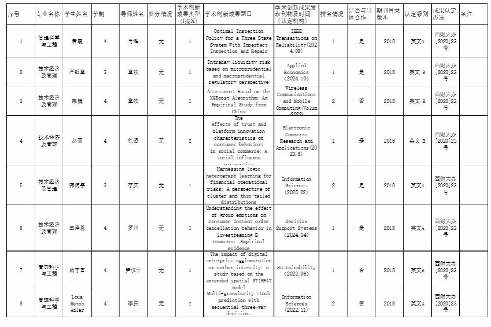 根据《黄色动漫 博士生申请学位学术创新成果认定办法》和黄色动漫 相应专业的博士生培养方案要求及科研成果发表的相关规定,学院对相关博士生的学术创新成果及科研情况进行了审核,现将结果予以公示。公示期自2025年3月4日至3月24日(十五个工作日),在此期间若有异议,请及时反馈学院。